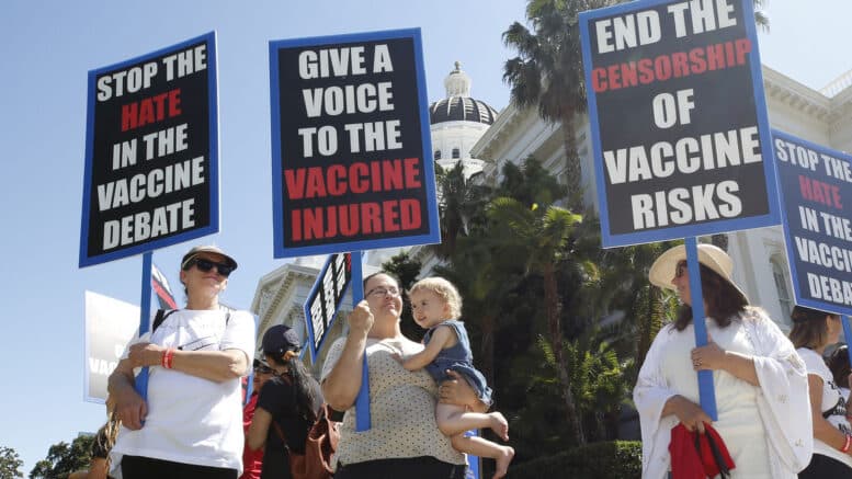 People at a demonstration calling for medical freedom against forced childhood vaccinations at the Capitol, in Sacramento, Calif. These mothers are now charged with being "extremists" and threats to national security. | AP Photo